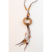 • Circular Glass Pendant necklace with glass bead accents