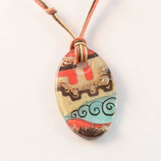 - Hand painted oval glass pendant necklace: 2"