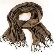 - Black and Taupe scarf with Metallic thread accent