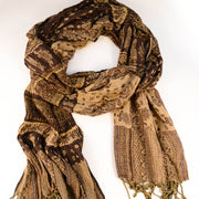 Patterned Brown & Light Gold Scarf with gathers to create full, cosy look!
